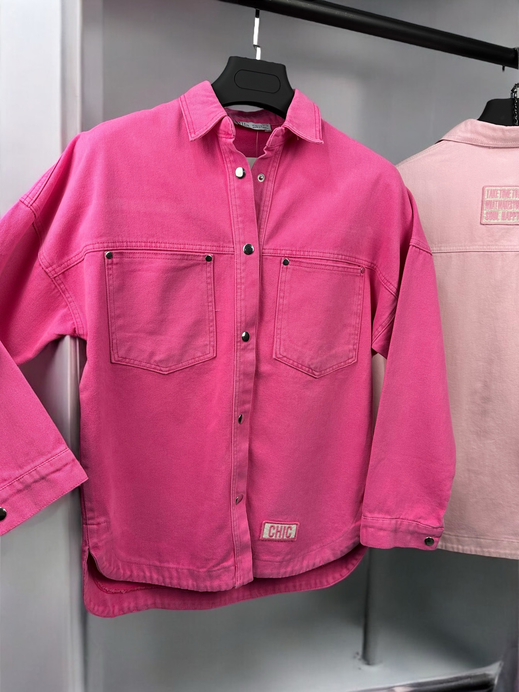 33.23 € / 64.99 лв.Дамска розова дънкова риза – яке Oversize CHIC