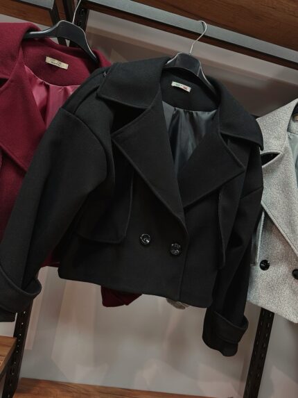 Дамско късо черно палто