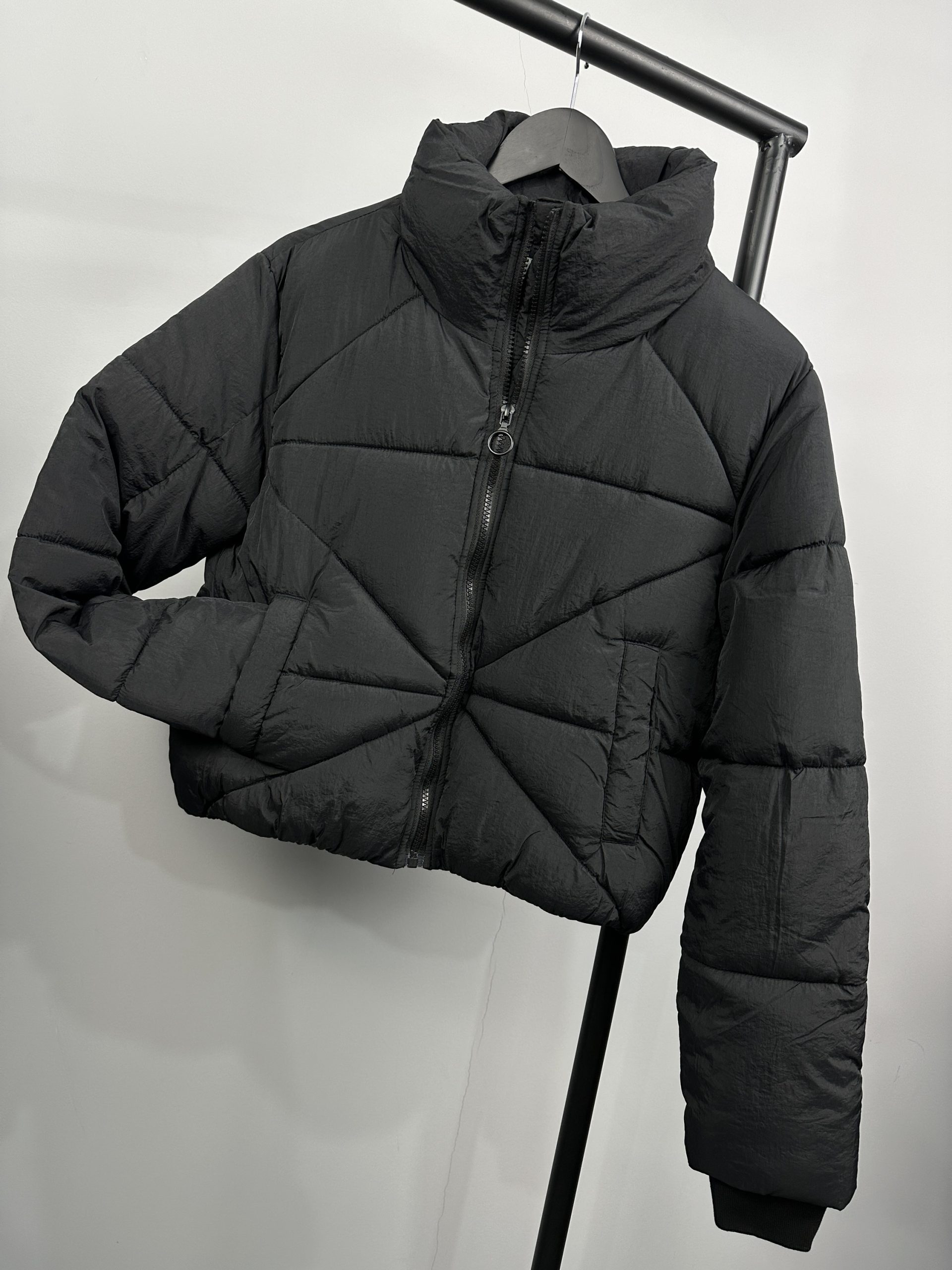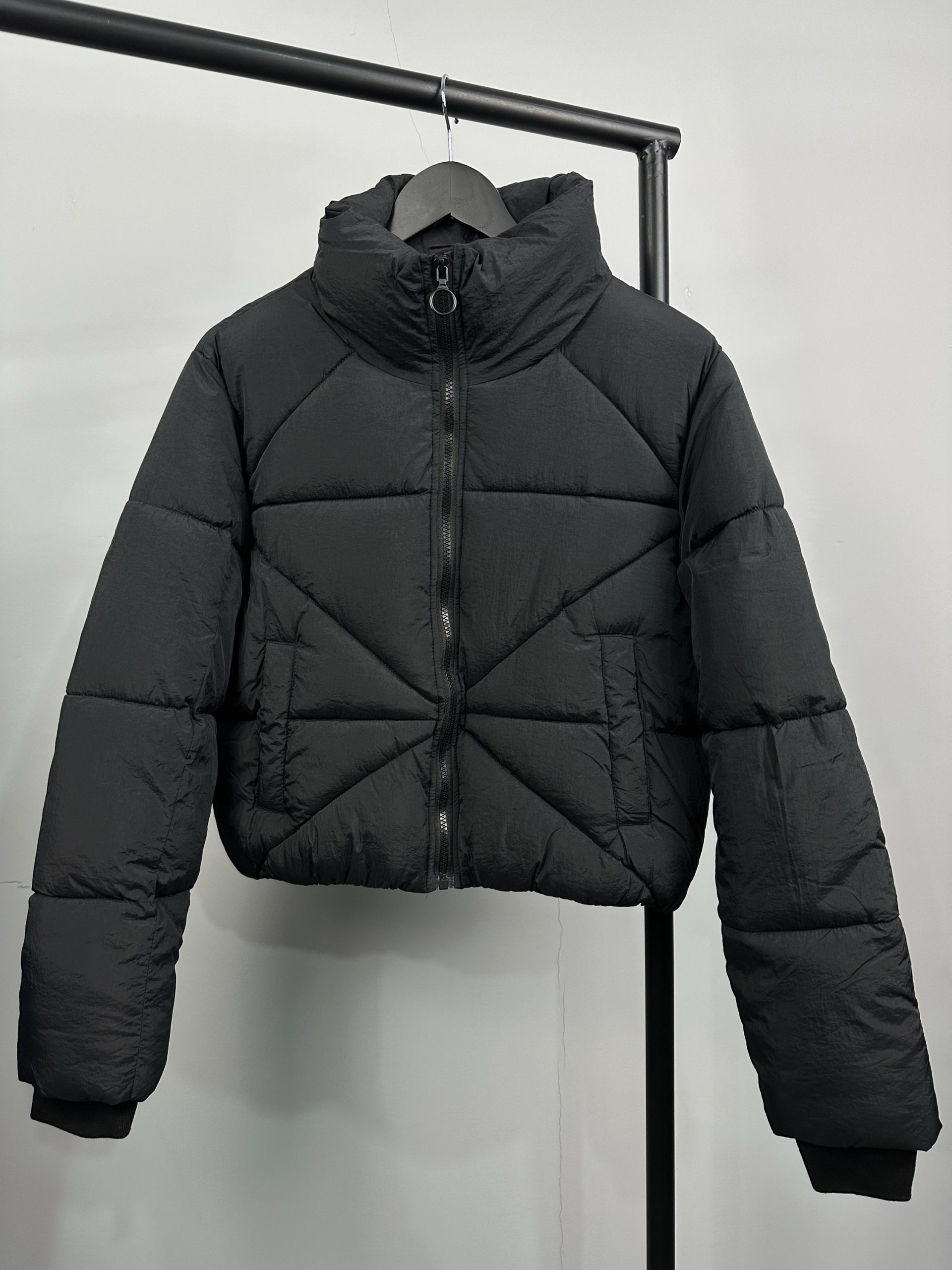 Късата кройка подчертава силуета ,а пълнежът осигурява комфорт и защита през студените дни. Класическият черен цвят го прави лесно за комбиниране – от ежедневни визии до спортно – елегантни аутфити.