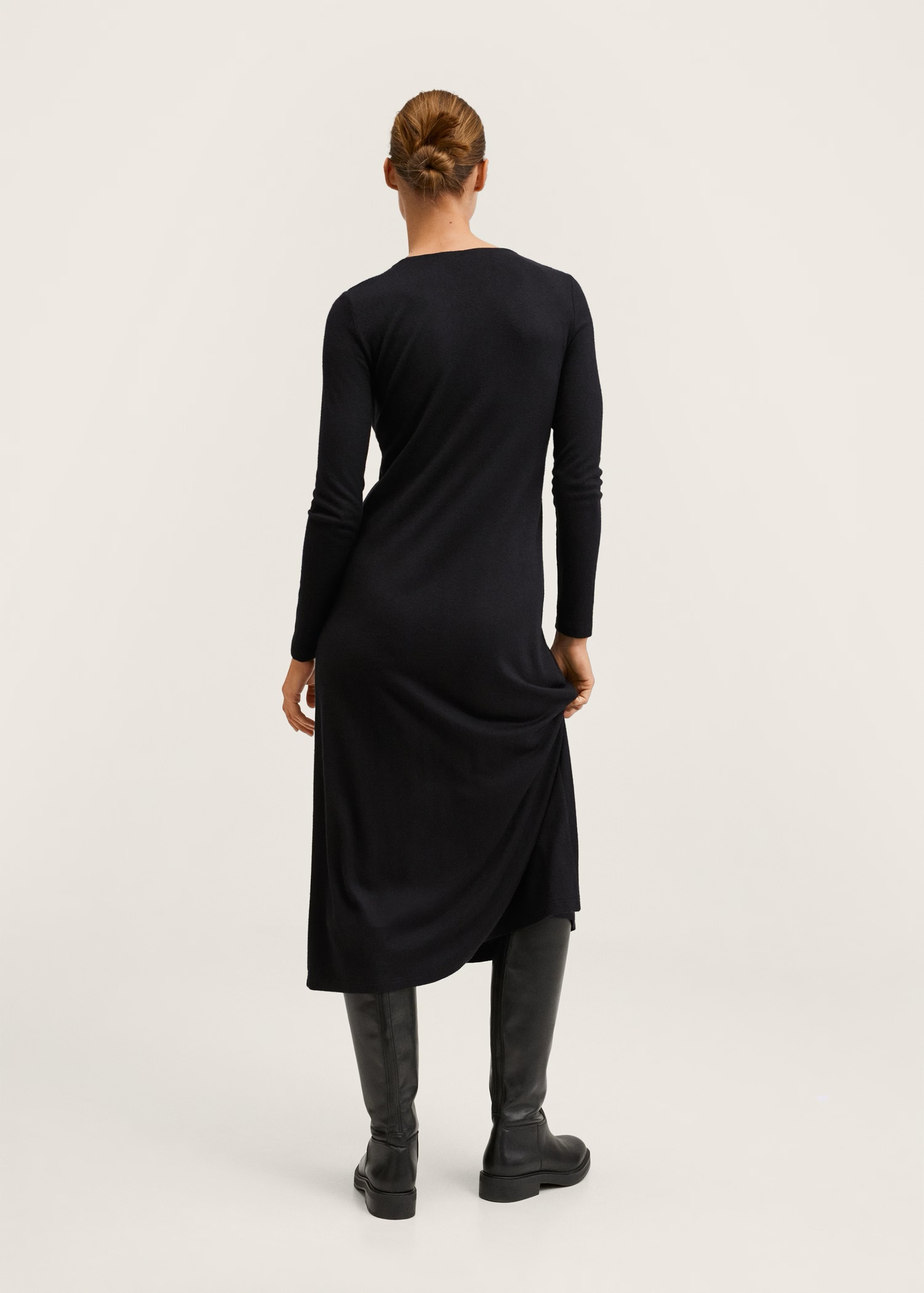 Изработена от фина плетена и лека материя, тази дреха осигурява комфорт и свобода на движение през целия ден. Разкроеният силует подчертава фигурата по изключително елегантен начин, а дългият прав дизайн придава издължена и стилна визия.