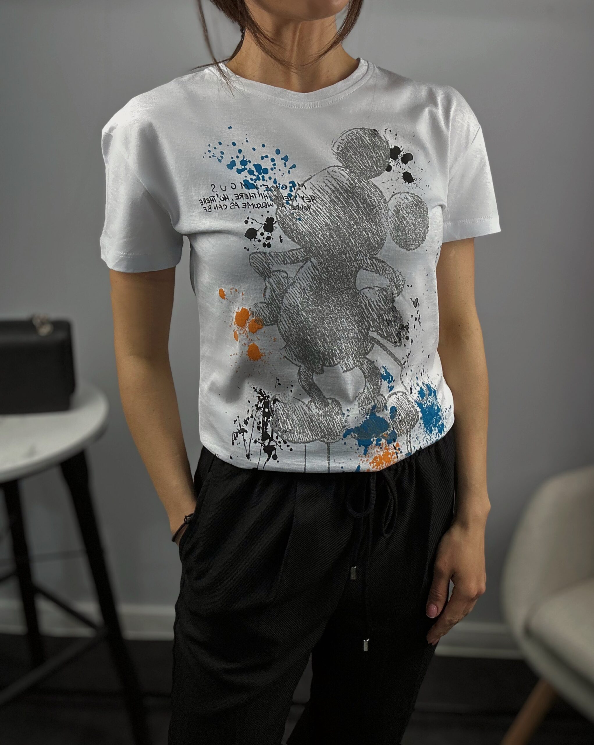 Дамска тениска с щампа Мики Маус , която придава свежест и индивидуалност.