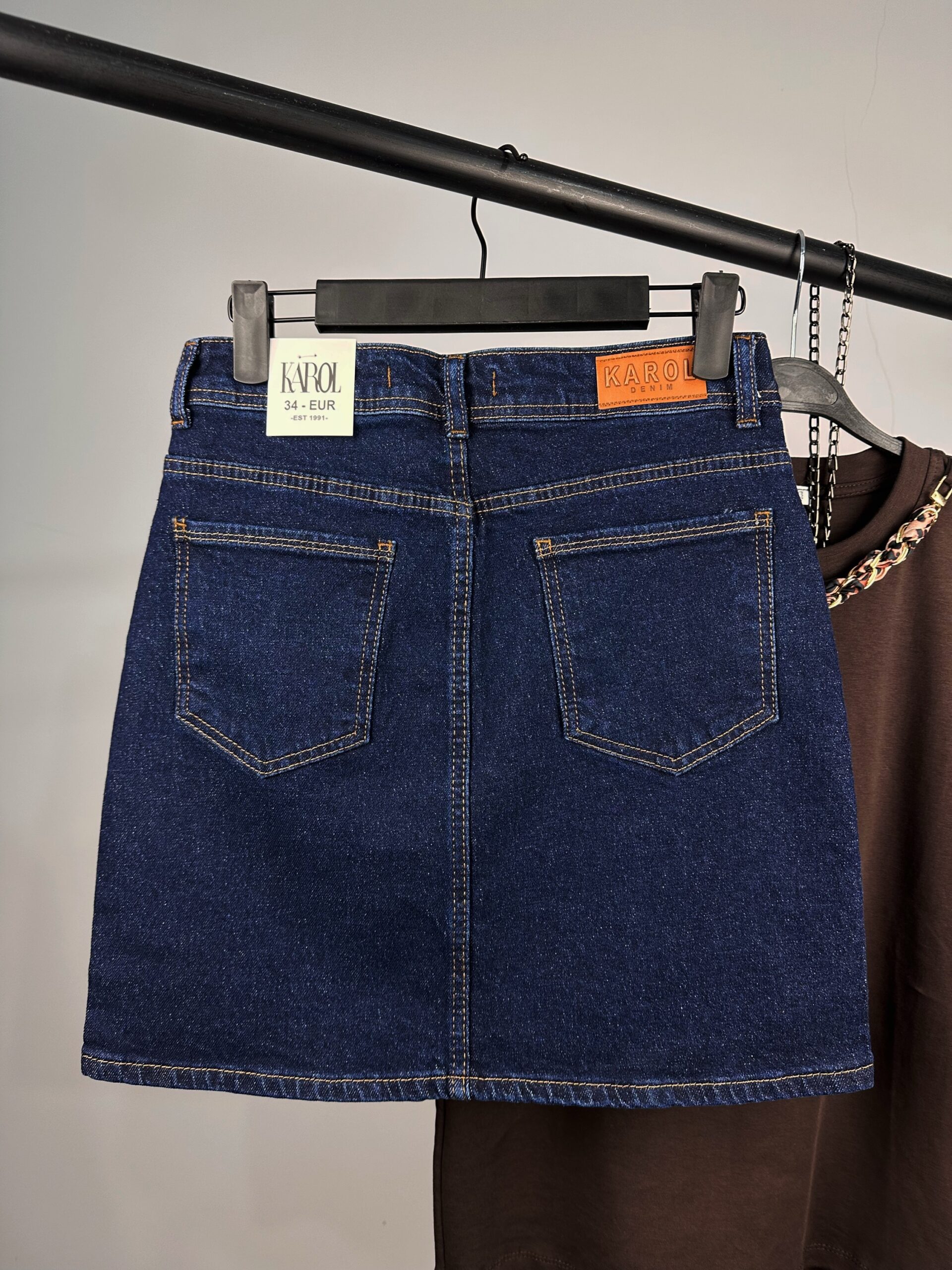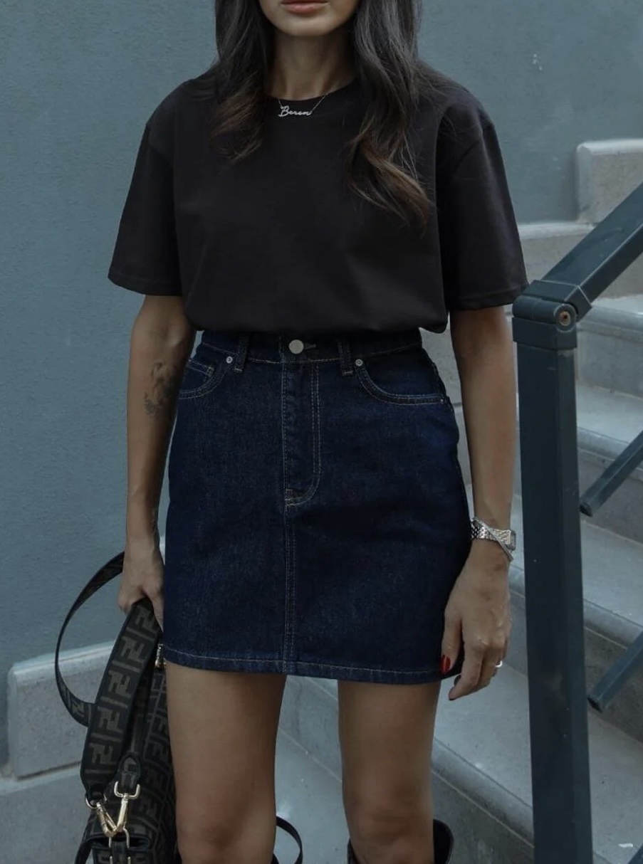 Подчертай своята женственост и увереност с тази дамска тъмносиня дънкова мини пола с висока талия, създадена да оформя красив силует и да придава изключително стилно излъчване. Това е класическа деним пола, която никога не излиза от мода и е основен елемент във всеки модерен дамски гардероб.