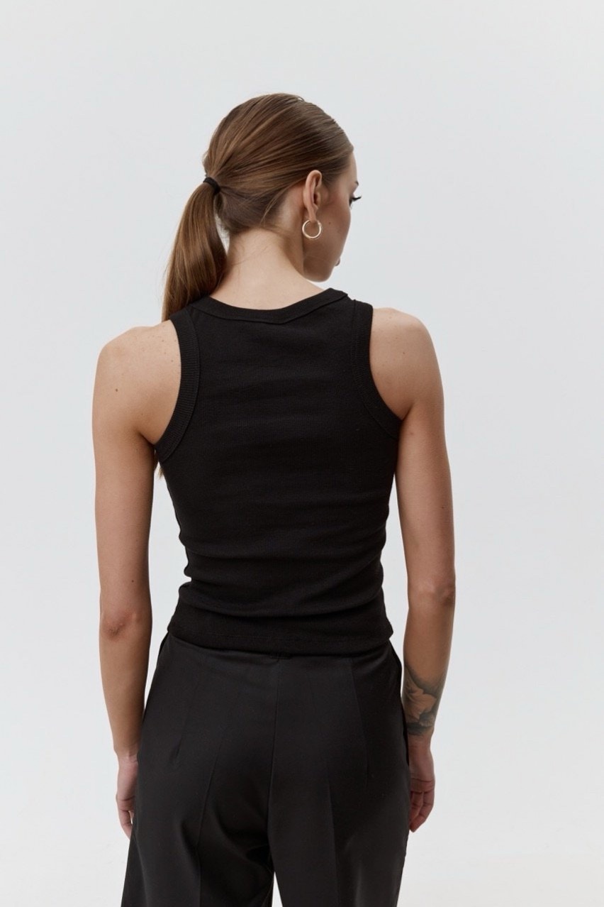 Този прилепнал дамски топ е идеален както за ежедневни аутфити, така и за по-стилни комбинации със сако или панталон с висока талия.