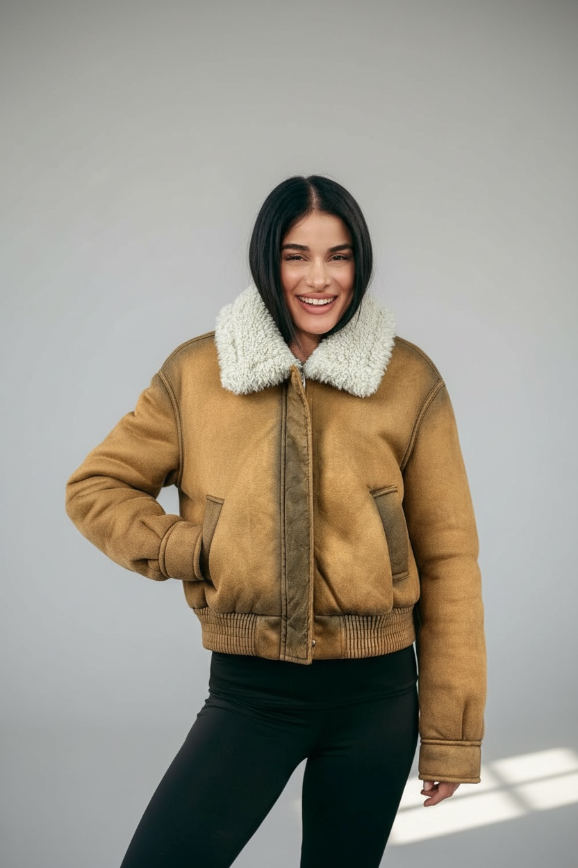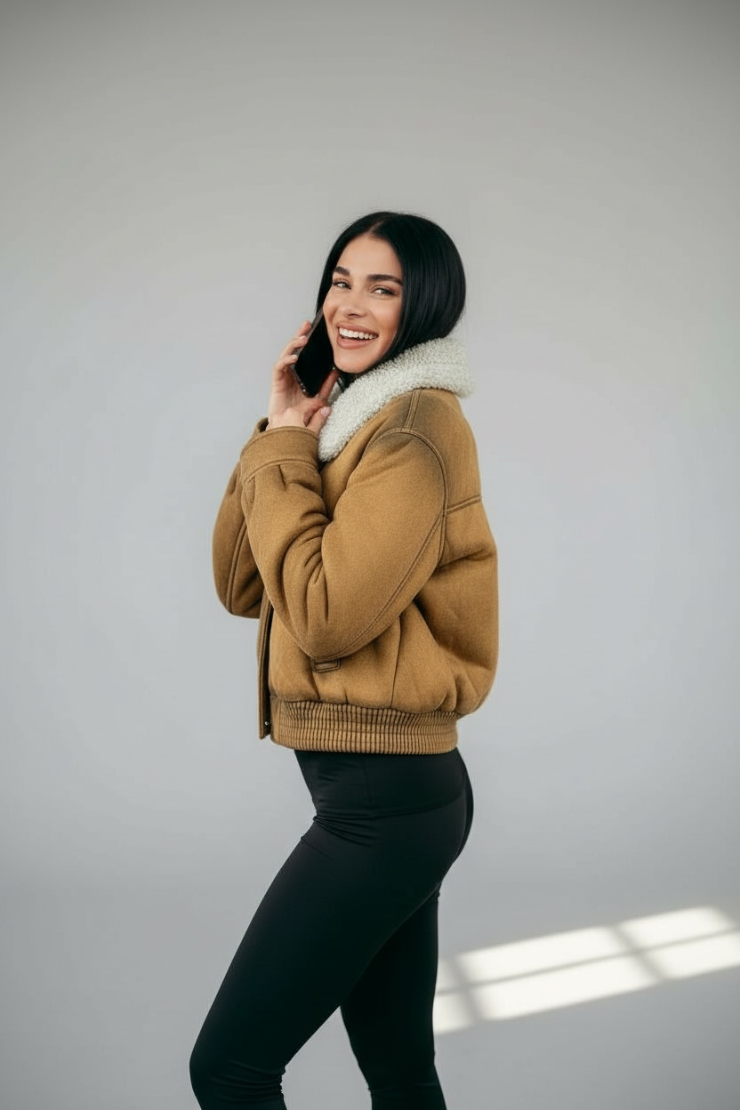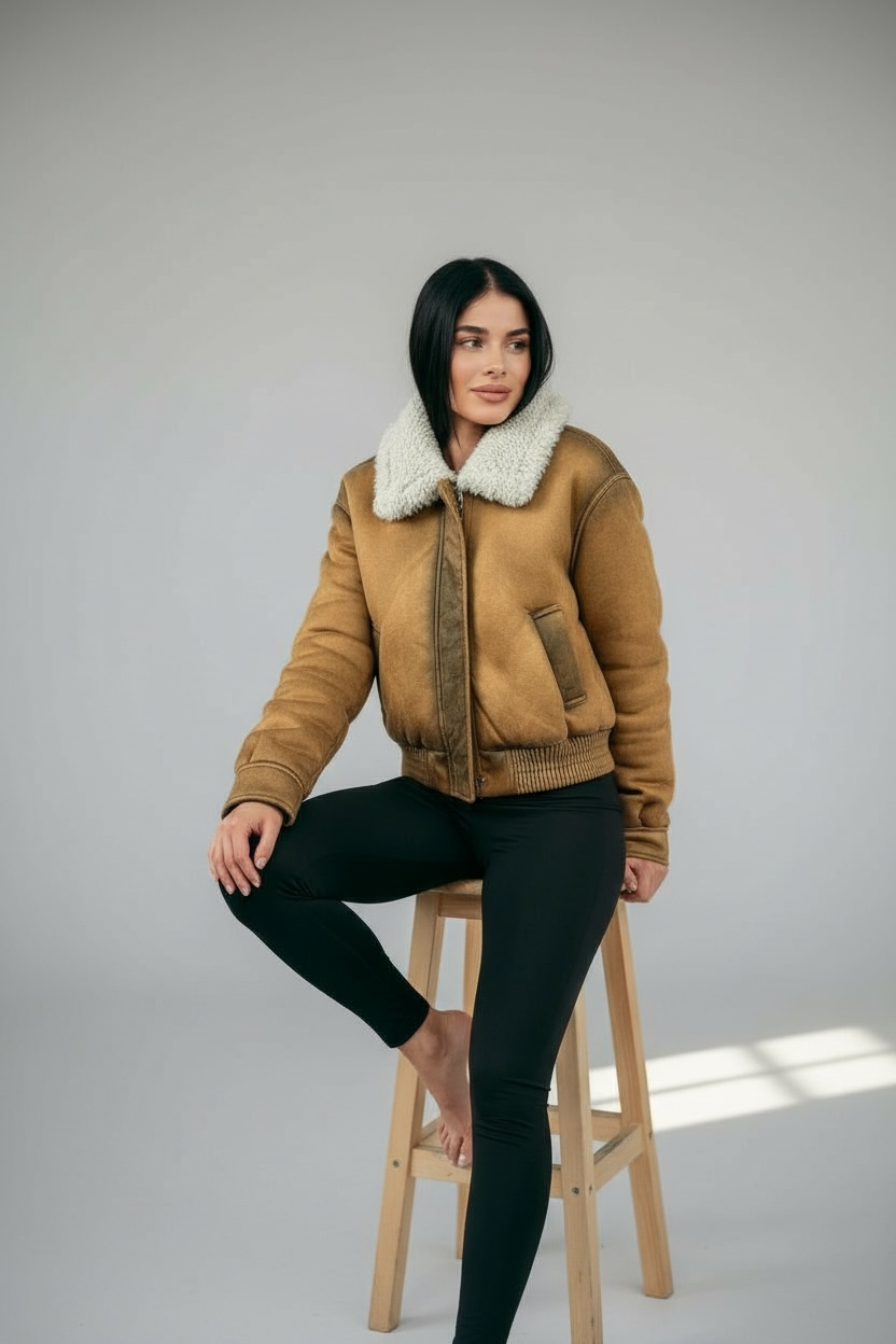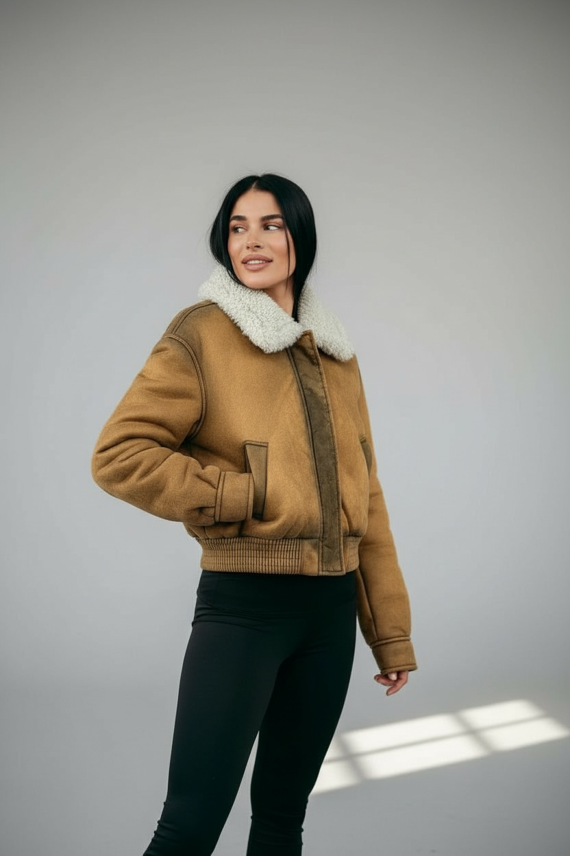 Светлокафяв дамски плетен комплект от две части с midi пола