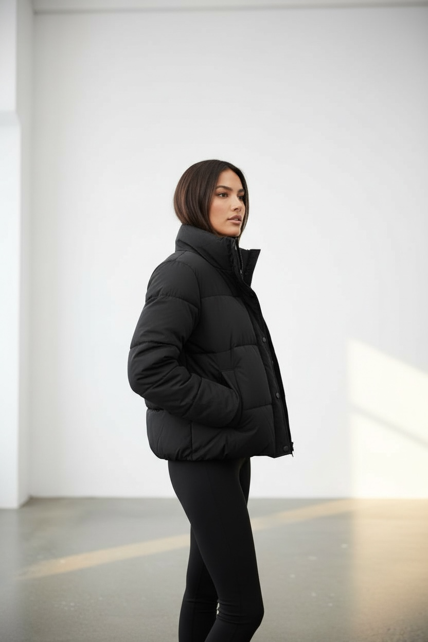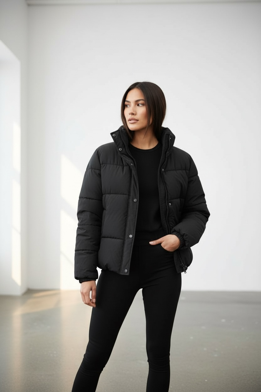 Изработено от висококачествен водоотблъскващ материал, който предпазва от дъжд и сняг, това дамско зимно яке е идеален избор за ежедневието, разходки, пътуване или активен градски стил. Класическият черен цвят го прави лесно за съчетаване с дънки, клинове, спортни или casual аутфити.