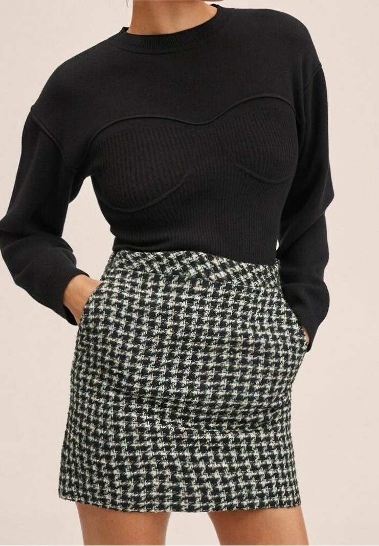 Къса пола от туид с десен пепит