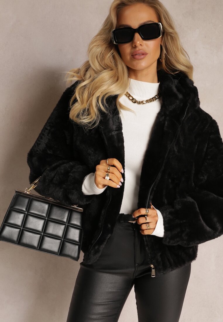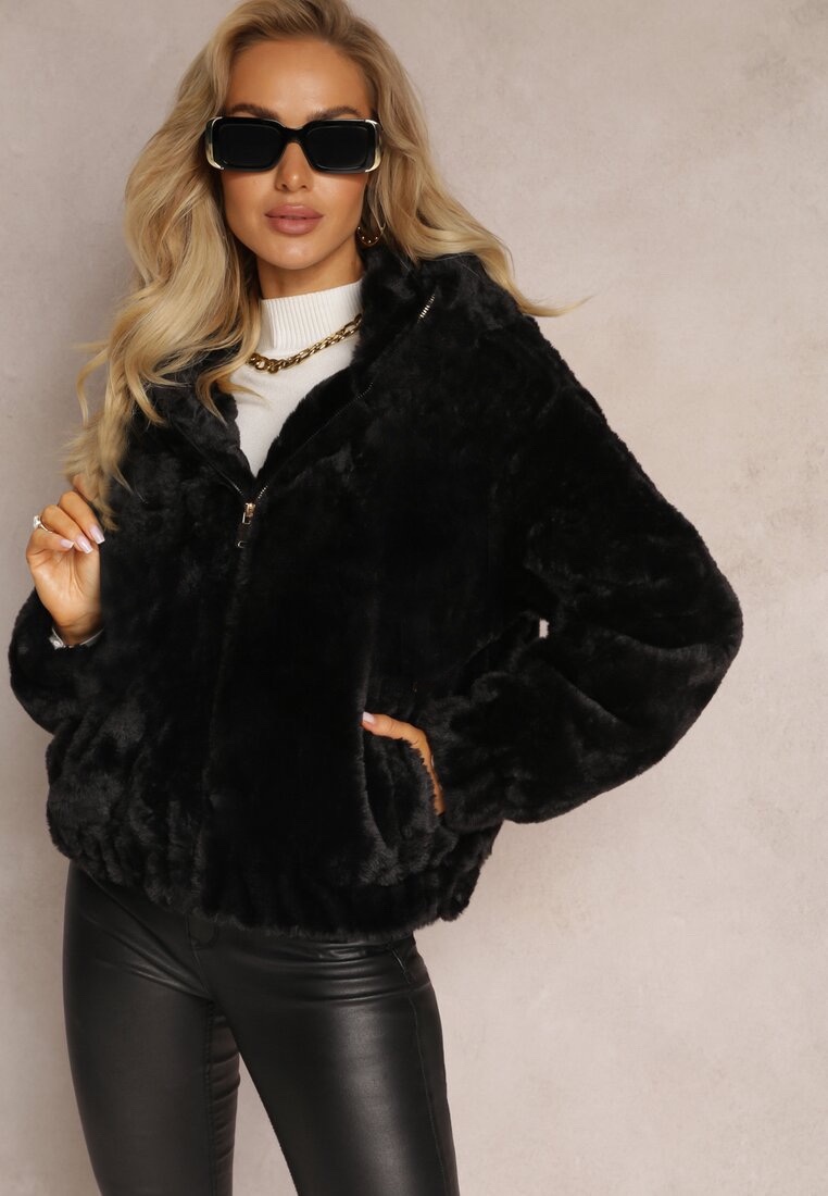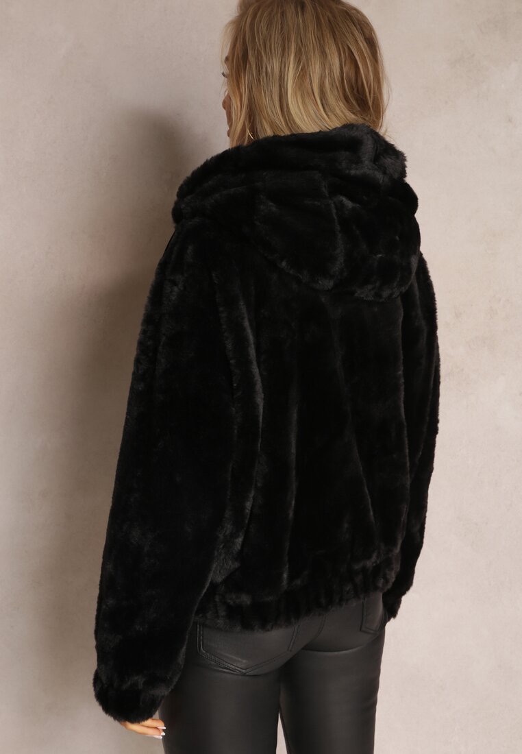 Меко пухено черно яке с качулка