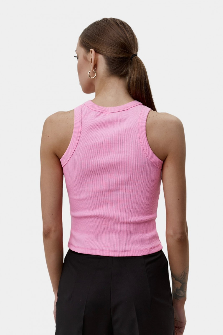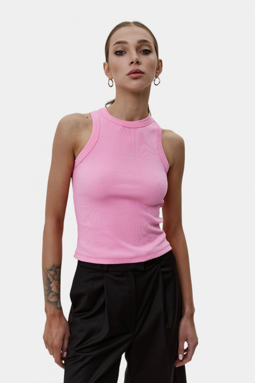 Розов рипсен потник с обло деколте